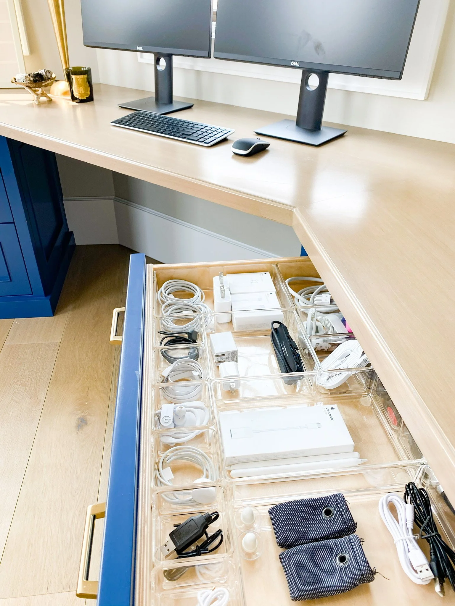 Before establishing a system for your cords, step 1 is to take inventory of all the cords you have. Make sure you only keep the cords that you actually use. Donate or sustainably dispose of the cords you no longer need! We often lose track of what each cord is - so don’t be afraid to look it up to figure it out! Step 2 is to unpackage every cord (if you have the boxes still) and to immediately label them (I love this label maker from Brother P). Once you have completed these initial steps, it’s time to organize.