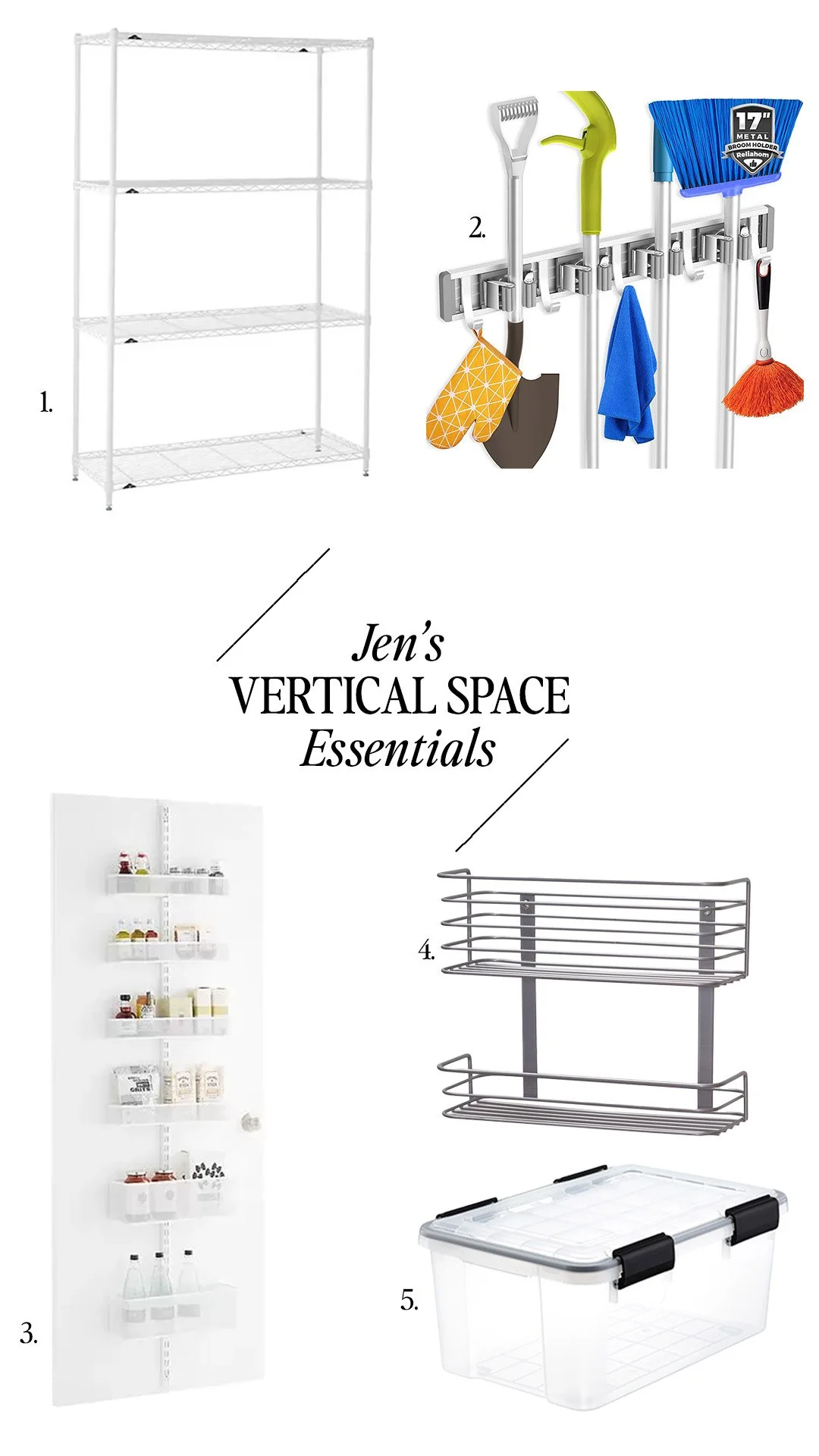 I think we often define the size and storage accessibility of a space based on what meets our focal point. Due to this, it can be super easy to forget how much bonus space we get by using high and low spaces. Whether I have a client with a massive room or a smaller room, utilizing vertical space is essential. This can be storing shoes on a door hanger or pull-out drawers. Take a peek at a few of my favorite vertical space organizers: